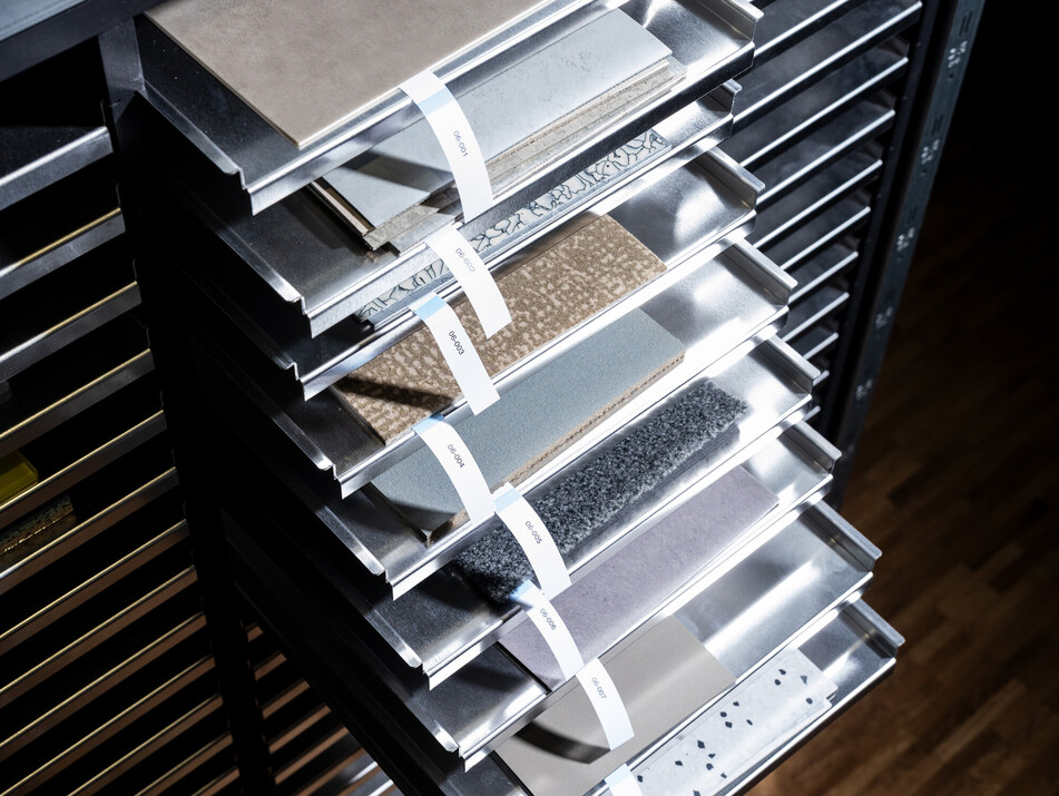 Die Material-Kollektion setzt sich aus einer digitalen und einer physischen Kollektion zusammen. Jedes Material ist mit Bildmaterial, einem Materialmuster und umfassenden Materialinformationen in Form eines standardisierten Datenblatts erfasst und einer dieser drei Kategorien zugeordnet: